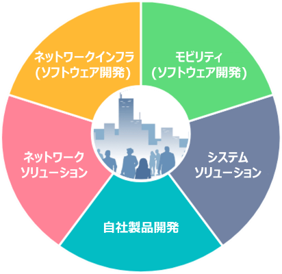 5つのコア事業領域でICTに関わるトータルソリューションを提供するエス・イー・シー・ハイテック。幅広い技術の提供により、産業や社会、その先にいる生活者の暮らしを支えています。